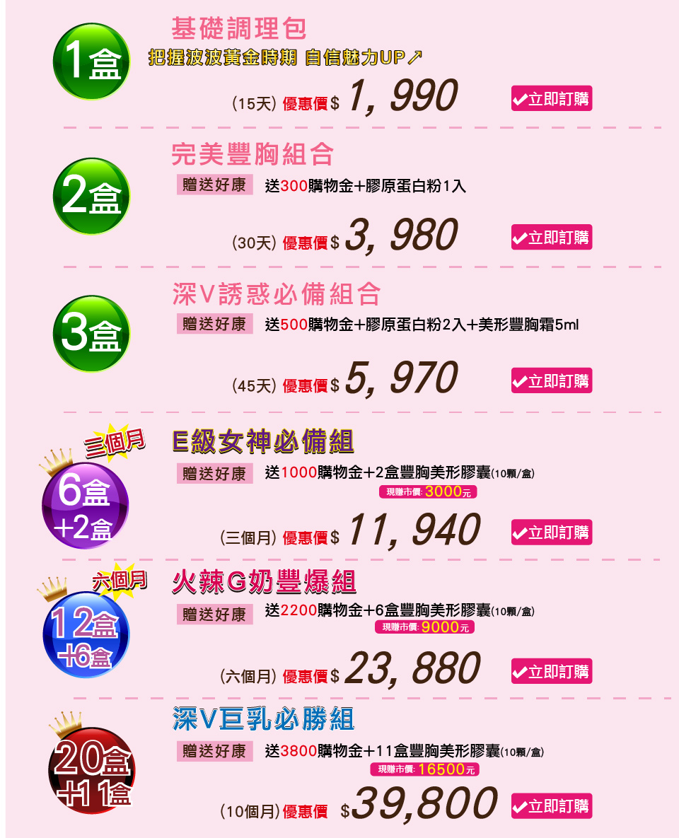 購物金2200、美型豐胸膠囊x6盒(10顆/盒)